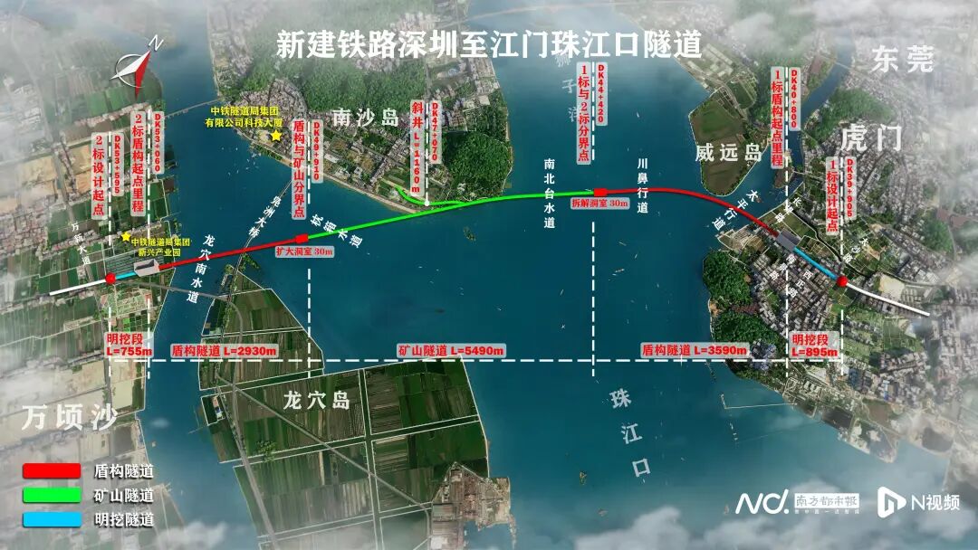 作为深江铁路先行开工段工程,珠江口隧道全长13.69公里,于2020年7月开工,土建工期56个月。
