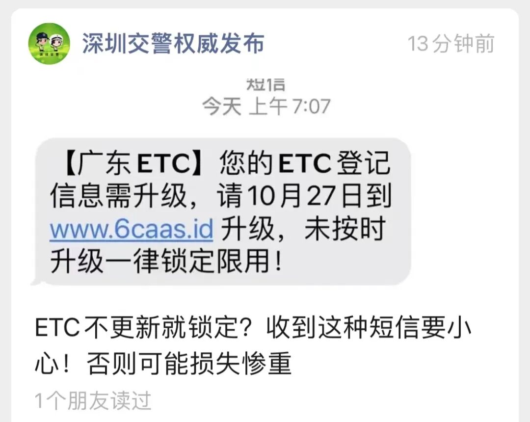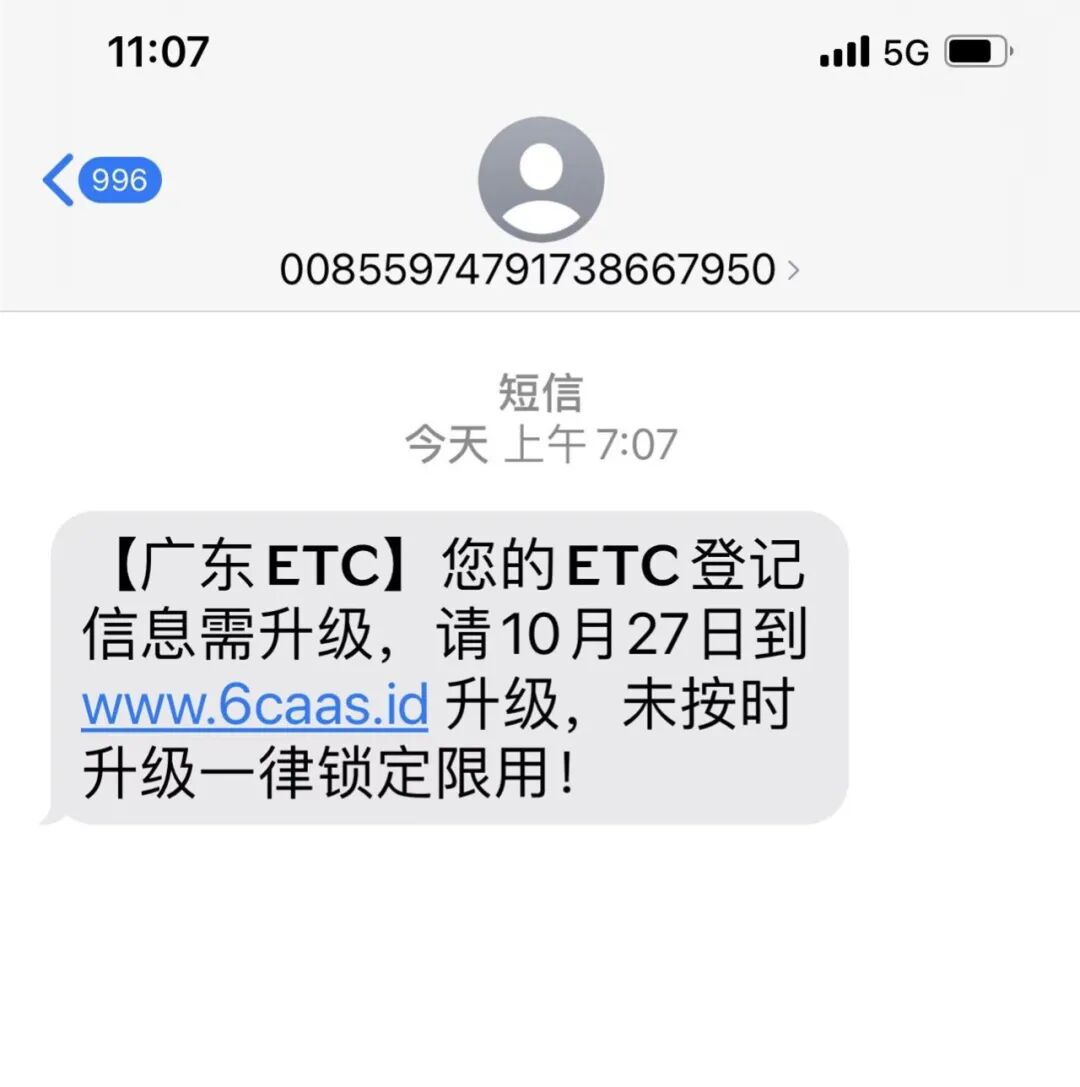 近期,ETC短信骗局