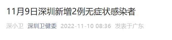 11月9日0-24时,深圳新增2例新冠病毒无症状感染者,均在集中隔离观察人员中发现。