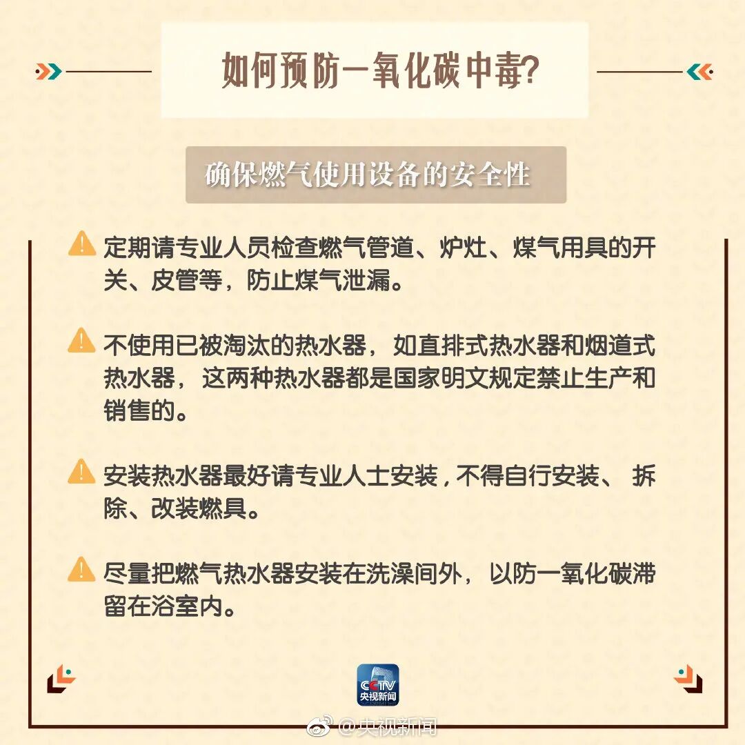 冬季,在浴室等密闭空间,因氧气不足、不完全燃烧,产生一氧化碳浓度过高,也可导致人体中毒,引发伤亡事件。