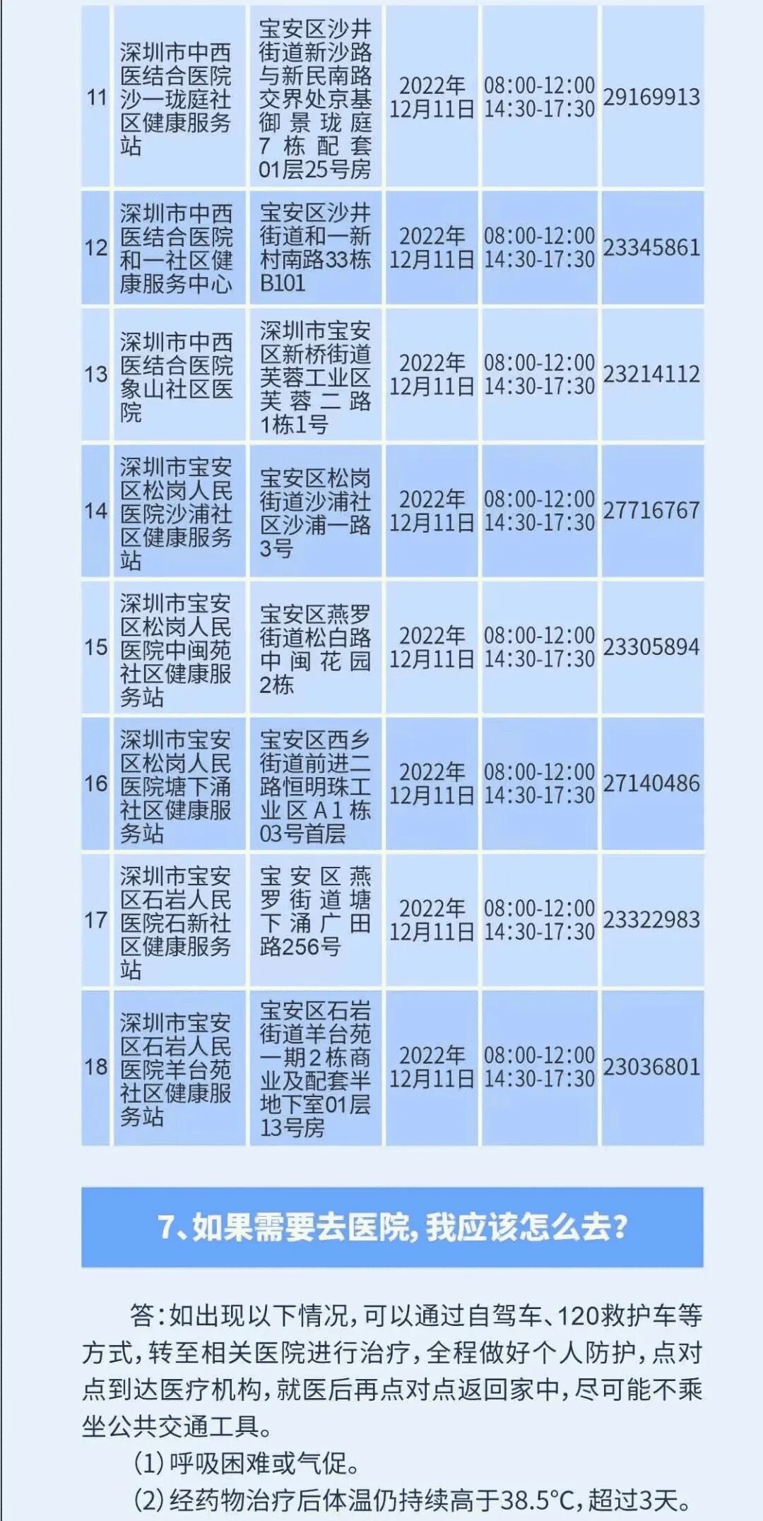为做好新冠肺炎患者医疗救治工作,12月11日(星期日)开始,南山区先行开放10家社区健康服务中心发热诊室作为第一批接收发热、乏力、腹泻、咽痛等“十大症状”患者的社康机构,患者可前往就医。