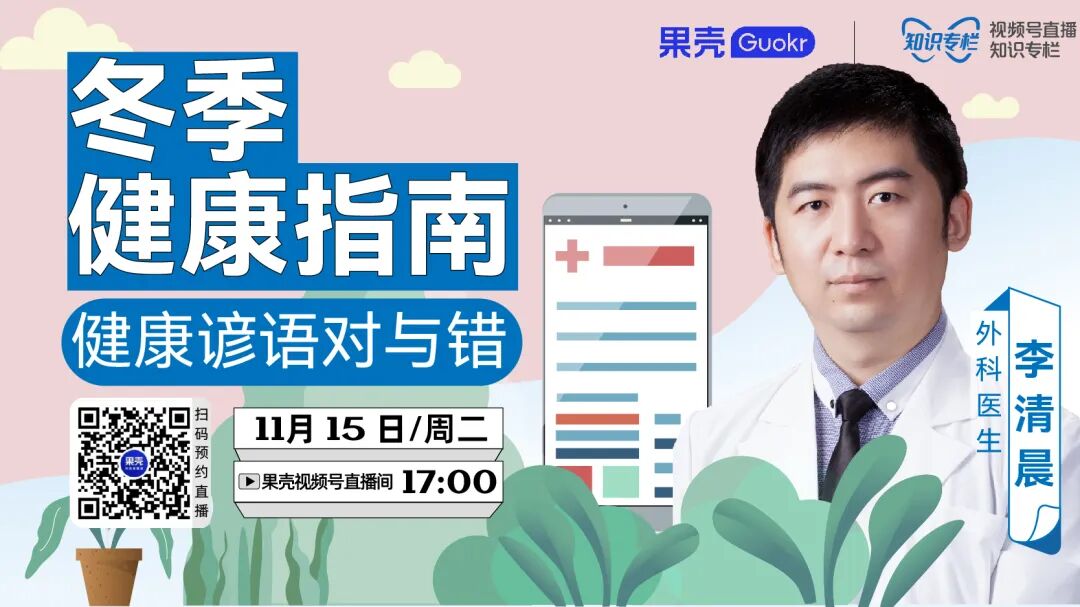 春捂秋冻,冬吃萝卜夏吃姜?生活中充斥着各种关于健康的俗语,这些俗语哪些是有道理的,哪些完全没有科学依据,我们如何去辨别俗语里的真与假呢?明天(11月15日17点),果壳直播间,听外科医生、《心外传奇》作者李清晨为你一一辨析!点击上方按钮预约直播~