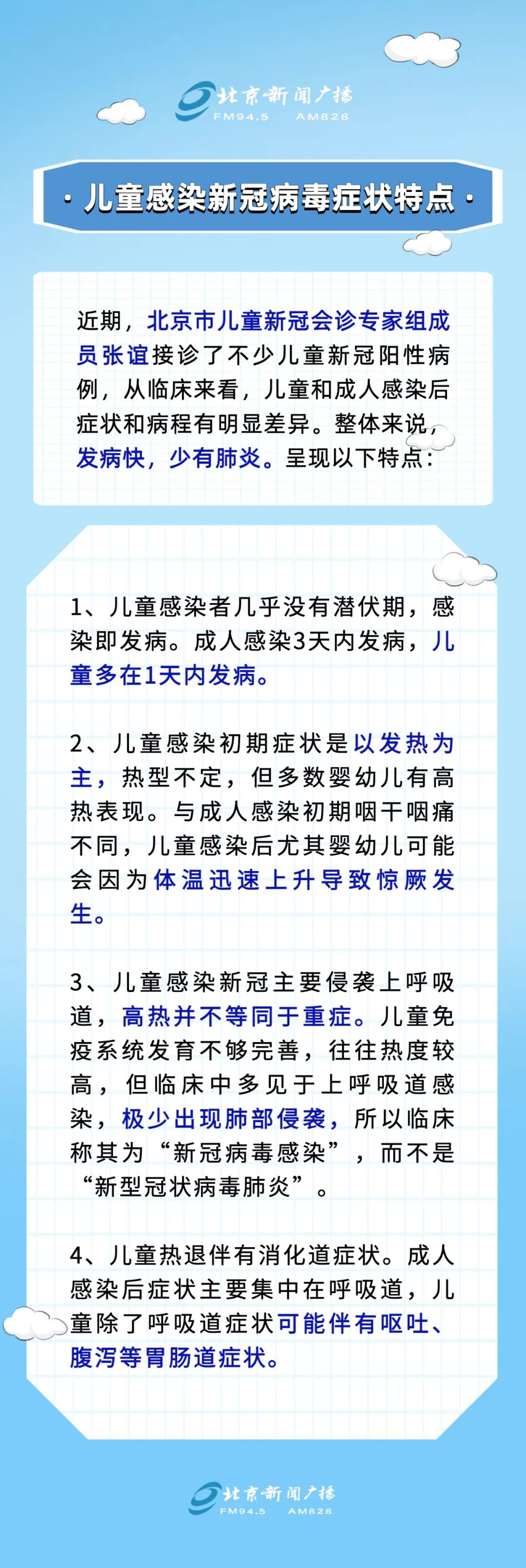 随着疫情防控政策优化,社会活动逐渐增多,儿童更应加强防护。儿童感染了新冠肺炎,有什么特点?病程什么样?应该如何对症治疗?一起来看关注——