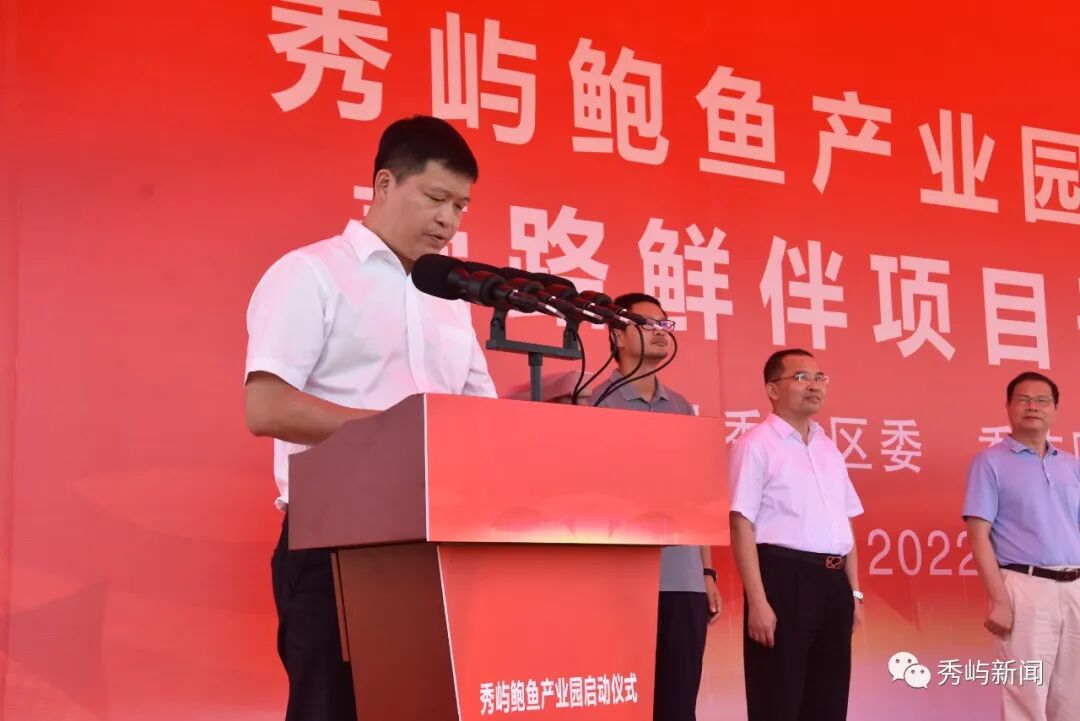 6月25日上午,秀屿区鲍鱼科技产业园暨壹路鲜伴生产研发基地项目开工、秀屿区商务大楼揭牌仪式举行。这是秀屿区深入贯彻落实省委“提高效率、提升效能、提增效益”行动部署要求,俯下身子抓产业、一心一意谋发展的又一重大举措,充分体现了区委区政府狠抓项目建设、加快产业发展的鲜明导向、坚定决心,标志着秀屿经济业态发展即将迈入新阶段。省、市、区有关领导邱章泉、张伯松、郑松青、郑新群、赵红、吴国清、陆建琪及来宾俞敏、柯才焕等参加活动。![]()
