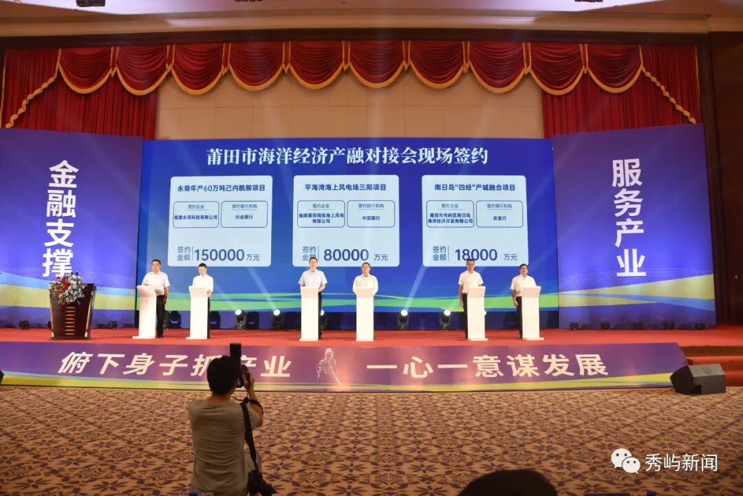 当前,秀屿进入了新发展阶段,产融合作恰逢其势,银企联动正当其时。莆田市海洋经济产融对接会是政银企三方“风雨共担”的担当之举,也是“发展共进”的责任之举,更是“互利共赢”的三赢之举。希望以此次产融对接会为契机,各金融机构、各企业人才能多了解秀屿、多关注秀屿,同心同向、同向同行,奋力实现地方经济、金融惠普、企业发展互利共赢。会上举行项目签约仪式,集中签约12个项目,签约金额76.15亿元。福建社会科学院副院长黄茂兴作专题讲座,银企间互动交流海洋经济金融政策。(朱钰胧 吴志军)![]()