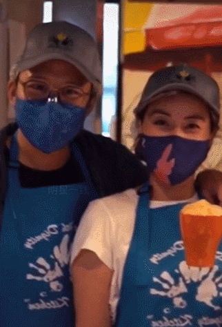 还有网友拍到霍启刚带着儿子,为大街上的露营者送食物。