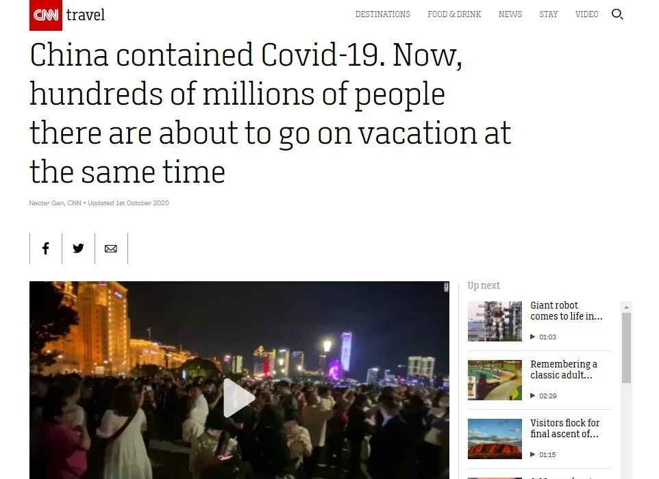 CNN有一篇报道,国外新冠还在疯狂殖民其他国家,而中国,因为疫情管控成功,千千万万的人都在正常生活、享受假期。