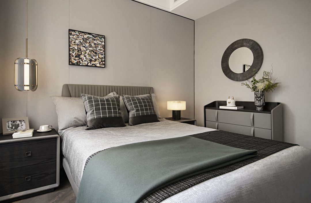 浮世喧嚣,我们需要一处归心场域,卸下各种角色,做回真实自由的自己,享受内在精神的深度放松。睡眠区延续了公区雅致高级的灰色调,以宁静的空间质感,呈现静默的美感,营造静谧舒适的睡眠氛围。