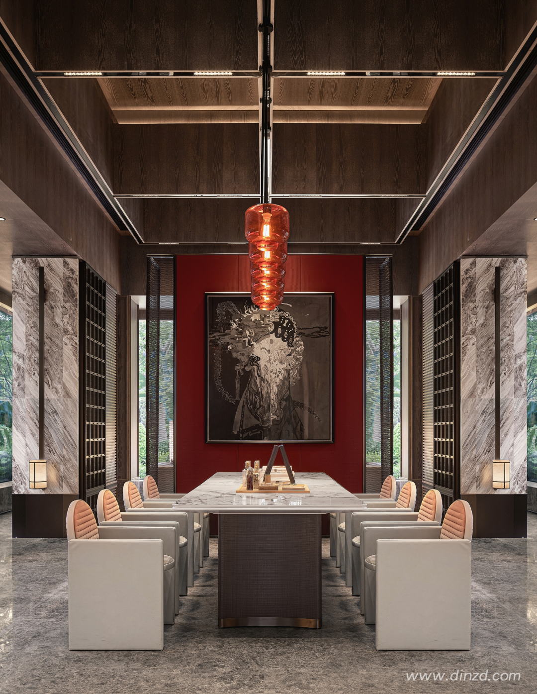 设计师并没有刻意讨好形式上的转筒中式主义,去堆砌千篇一律的具象符号,而是在无锡当地文化中完成现代与传统的结合、创新精神和精致艺术的无缝衔接,以东方之雅的美感。