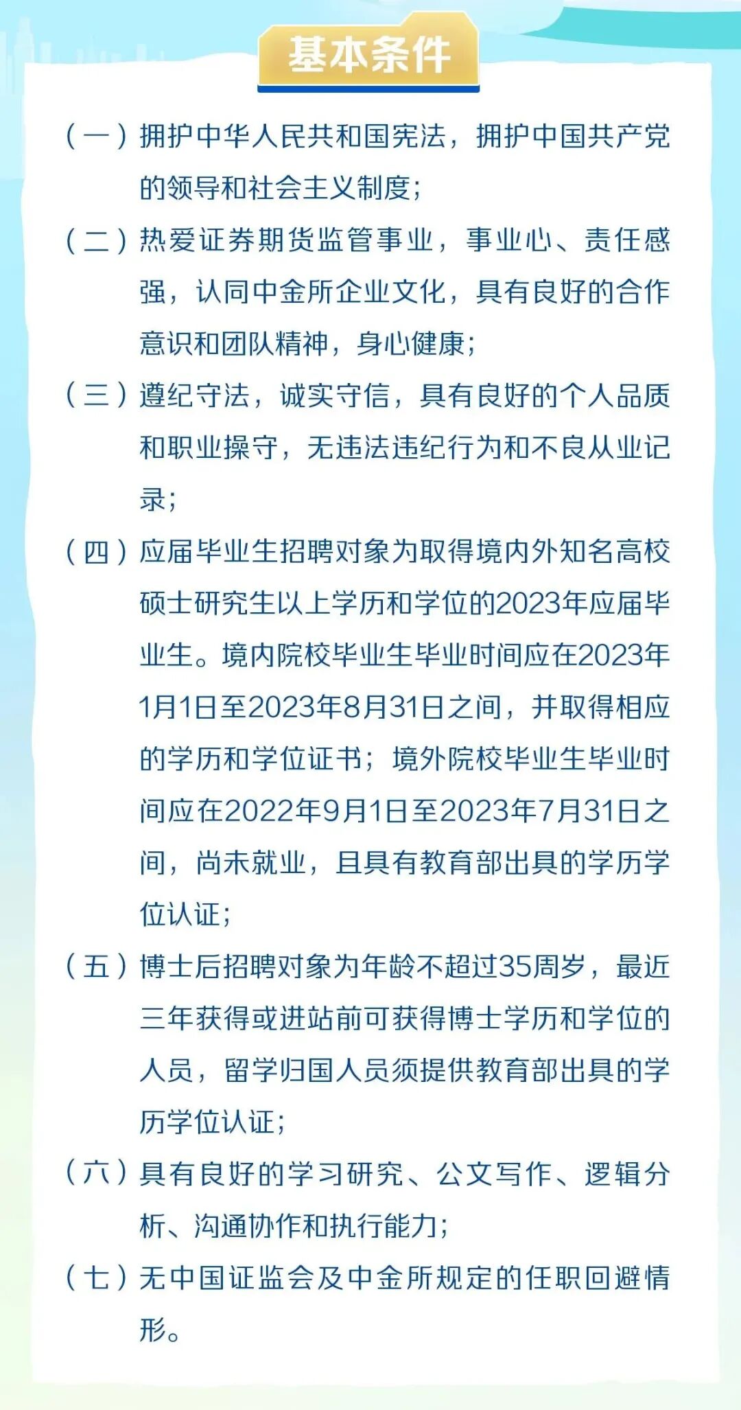 招聘 | 中国金融期货交易所2023年应届毕业生、博士后招聘公告