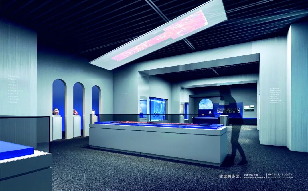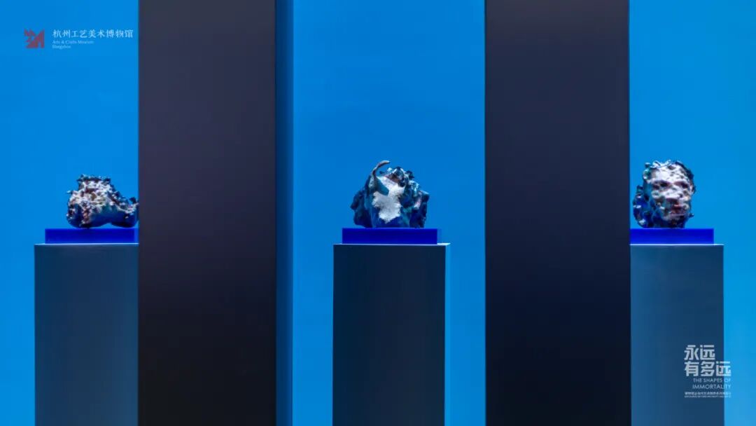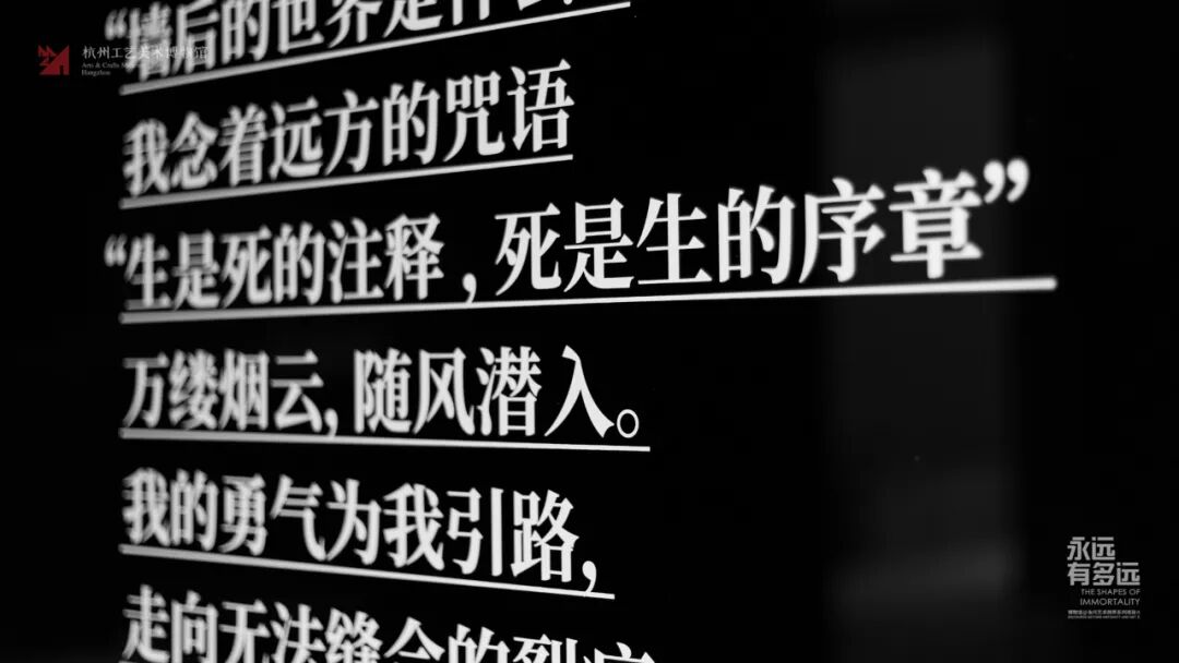 “永远有多远”是继2018年“女神的装备”后,杭州工美博物馆“博物馆@当代艺术”跨界系列项目的第二个展览。策展人选择从“女性问题”转向了“生命的问题”---一个“不可言说”却“不得不说”的话题。尤其是在2020年这个特殊的年份,在真正面临集体困境的时候,作为公共文化机构的博物馆有责任聚焦此类深度课题,需借助历史的厚重与艺术的敏感,反思经验、抚慰心灵。展览将延续历史文物与当代艺术并置的做法,围绕“永恒·永在·永生”,通过““世俗寄托与祈求”∞“信仰抒写与追求”、地下王国” ∞“虚拟世界”、“天人之境”∞“异体替代”、“仙者之望” ∞“物种进化”四个篇章,呈现从古至今关于“生命观”的认知与表达、实践与想象等内容,希望通过“博物馆之物”和“当代艺术之思”让观众找到“生命观”对于个人的意义或对于时代的价值。展览共联合浙江省博物馆、金华市博物馆、黄岩区博物馆、慈溪市博物馆、绍兴博物馆、杭州市文物考古研究所、杭州博物馆、杭州胡庆余堂中药博物馆、湖南省博物馆、徐州博物馆等10家文博单位和24位艺术家,展出80组件文物藏品及26件艺术品。特别值得一提的是,展览得到了徐龙森、汤国等艺术家前辈的大力支持,我国第一位人工智能艺术家---微软小冰也加入了本次展览的现场创作,而蒋志、田晓磊、裴丽三位艺术家则是二次参展。文物展品中,“唐青瓷墓志罐”、“南唐投龙玉璧”、“西晋鸟兽楼阁青瓷堆塑罐”、“汉褐釉陶熏炉”、“五代沙埠窑青瓷香炉”5件展品为一级文物,“汉褐釉陶熏炉”为首次馆外展出。艺术品中,有5件是特意为展览创作的,包括冯且的雕塑作品《神的失误II》、徐龙森的水墨画《百米山水卷》、周先锋和汤国联合创作的陶瓷作品《山谷宿房考》、UFO媒体实验室的《悖论之门》和“萌-态-奇”小组的《六十日谈之后---永生篇》。其中,徐龙森创作的水墨画《百米山水卷》,堪称国内当代艺术展中最大的作品,而来自石玩玩的《夜将至》则是首次对外展出。