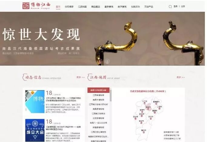 “博物江西”平台定位为“省域博物馆大数据平台”,以第一次全国可移动文物普查数字化成果为基础,整合江西省所有博物馆、藏品、展览等文物大数据资源,形成“省域文物资源地图”,可展示江西省全境博物馆分布,实现便捷查询浏览,并面向公众用户提供web端、手机端(自适应)、微信端三种线上服务渠道。