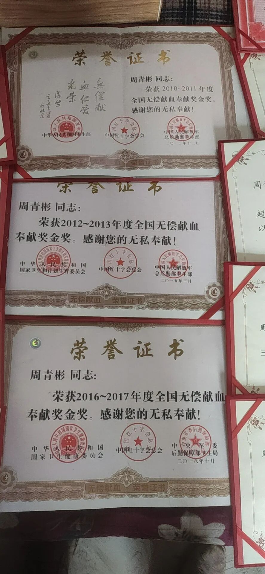 周青彬:我从第一次献血至今已经是14个年头。2008年汶川地震不久,我路过河北省博物馆文化广场献血屋看到人们排队献血,怀着为灾区人民尽一份力量的想法,我立即加入他们的行列,尽自己一份热血救助他人,从此开始了我的献血之路。截至目前我共献血一百四十多次,获得全国无偿献血金奖五次,这个奖国家两年评选一次。