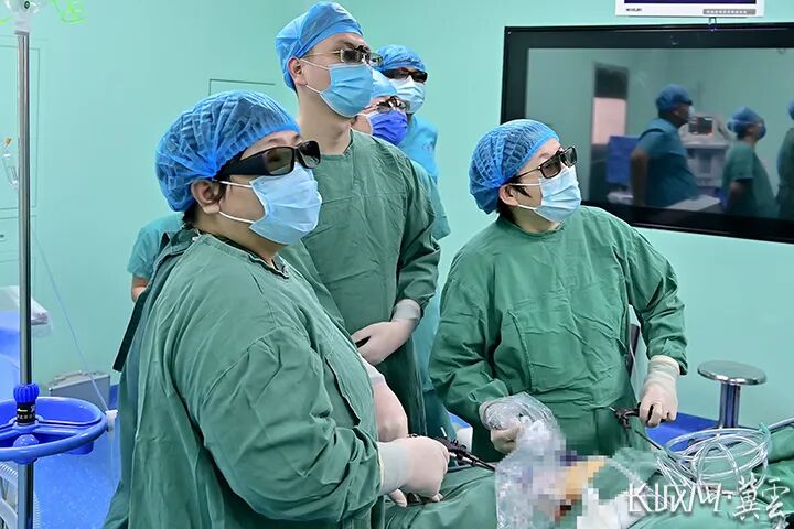 居艳梅(左)为一名子宫肌瘤患者顺利实施河北省县级医院中首例3D腹腔镜手术。故城县医院 供图
