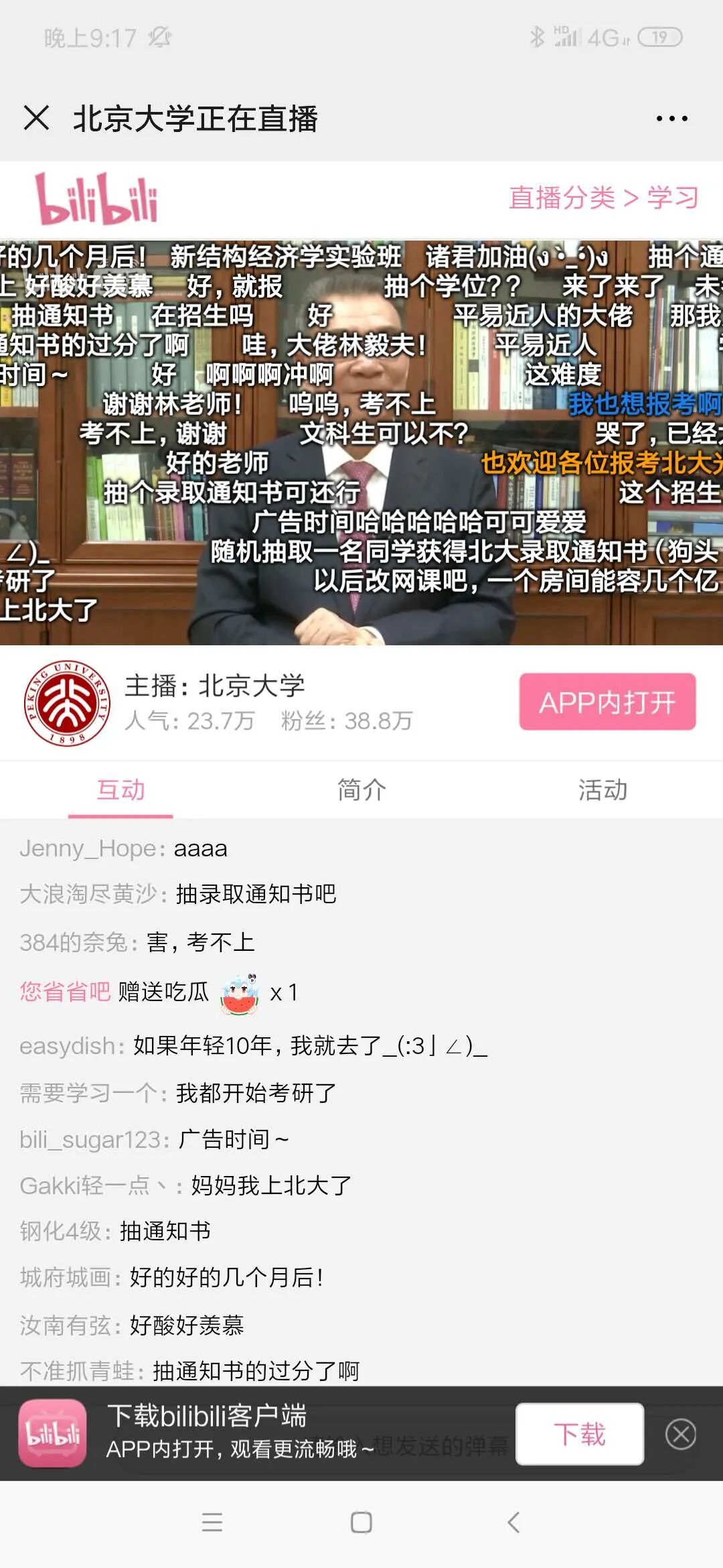 北京大学官方央视频账号