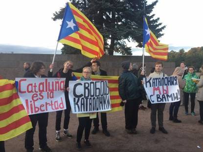 10月1日的独立公投结果并未脱出此前无数次类似投票“低参与,高支持”的基本轨迹,考虑到俄媒在西班牙终归有限的影响力,这些偏颇报道是否真在加泰罗尼亚近期的紧张局势中起到了什么作用仍是未知数,但它们至少已经产生了一个意外的副产品:10月7日,在圣彼得堡由俄反对派领袖纳瓦里内召集的抗议集会上,一群年轻人居然打出了“解放加泰罗尼亚”、“我们和你们在一起”的横幅。