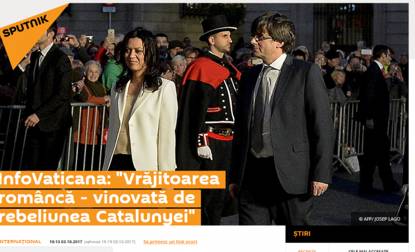 令人意外的是,攻击并不限于西班牙国内。10月3日,俄罗斯卫星网罗马尼亚语频道贴出了这样一篇报道:《InfoVaticana:“罗马尼亚女巫——加泰罗尼亚分裂分子之罪愆”》。