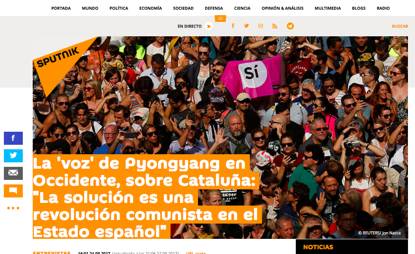 在这些报道当中,除了数量惊人的有关八十年前西班牙内战的回忆和比喻,最令人吃惊的内容来自俄罗斯卫星网,9月24日,该网站上出现了一份平壤“对外文化关系特别代表”呼吁加泰罗尼亚人发动“国家共产主义革命”的采访。