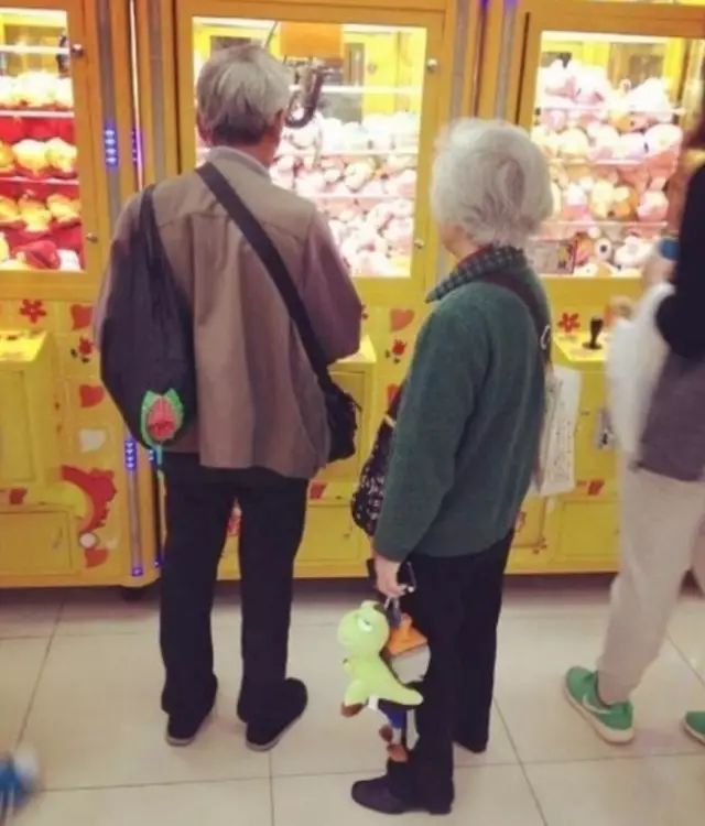 老爷爷正在专心地抓娃娃