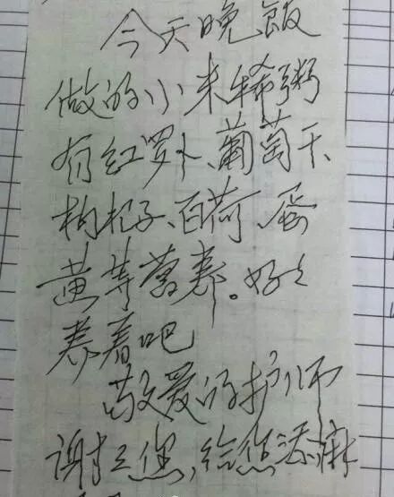“今天晚饭做的小米稀饭,
