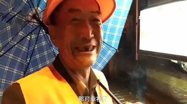 面对镜头,老爷爷笑着说: