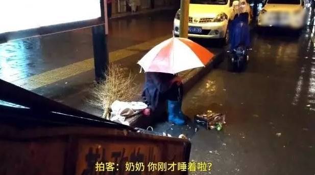一位身材瘦弱的老奶奶打着雨伞