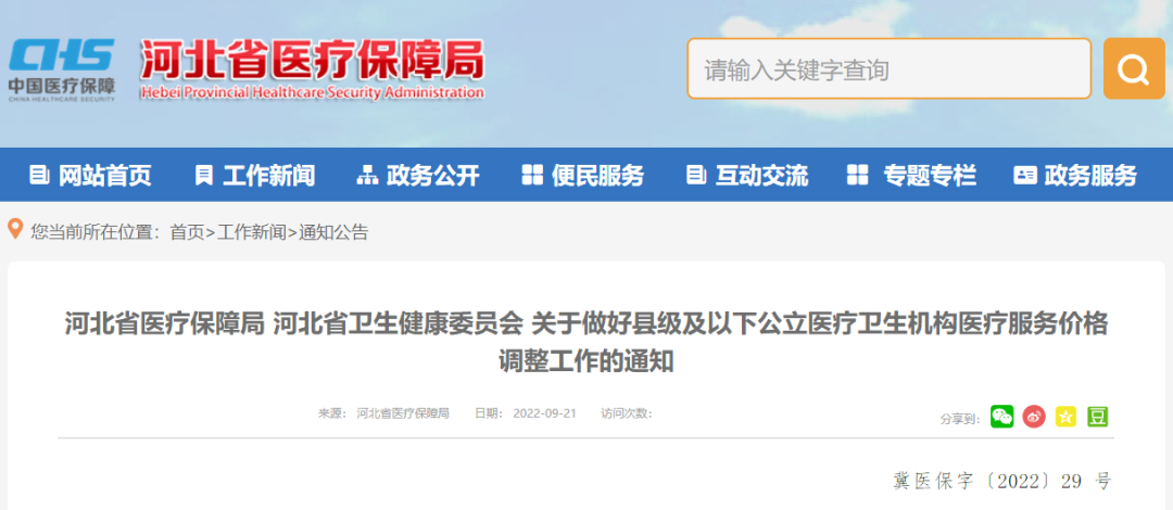 河北省医疗保障局、河北省卫生健康委员会联合印发关于做好县级及以下公立医疗卫生机构医疗服务价格调整工作的通知↓↓↓