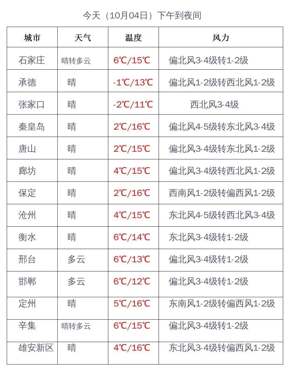今天下午到夜间,石家庄、沧州及以南地区晴转多云,其他地区晴间多云。
