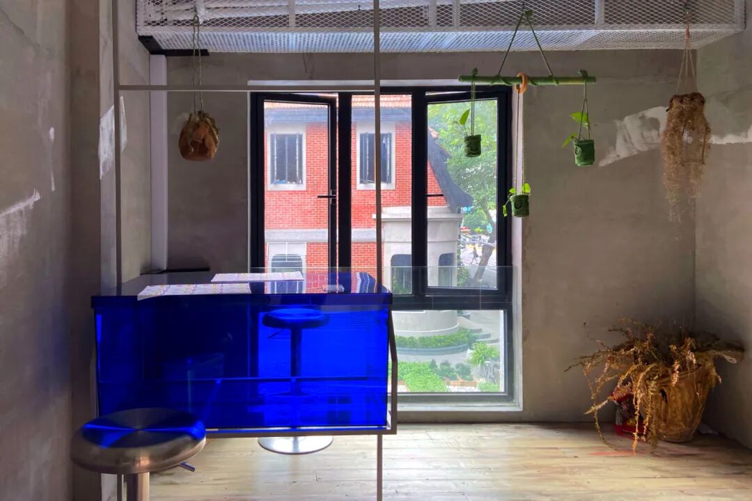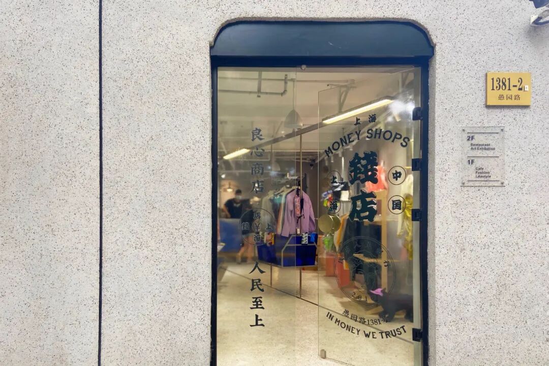 钱店Money Shops就是之前在太原路那个有着ATM机门面的网红店,后来迁址愚园路。Money Shops共有两层,占据了一整排楼,比较狭长,并且规划了外摆位。设计简洁,水泥、红砖墙面搭配蓝色店招。