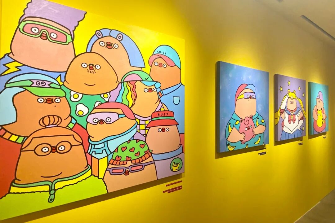 “12345 Day Care”以冲刷生活压力为目的,通过一系列人们熟知的元素,比如字母表、水果、卡通人物来塑造一个纯真的世界。展览吸引了很多年轻人参观,每个作品都有不少人排队等候拍照。