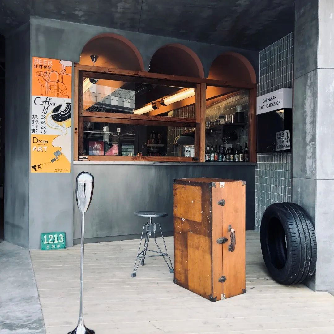 是一家集咖啡、精酿啤酒、纹身于一体的门店,共有两层。一层以饮品为主,二层则是纹身工作室。店里的装修主打工业风,还有潮玩、复古老物件装饰。