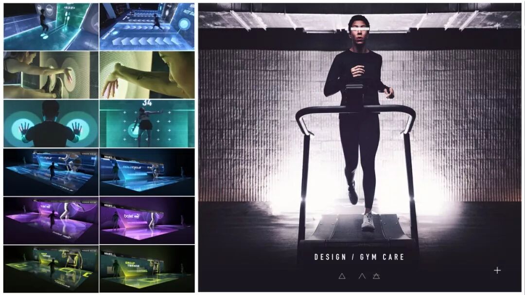 “GYM CARE”未来健身空间:面积约1400平方米,通过交互式光影全息手段,全方位地记录和引导可视化训练的各个环节,通过后台大量的数据模型分析,反馈训练结果的变化。提供极致的娱乐化训练体验,让运动训练更富有趣味性和挑战性。