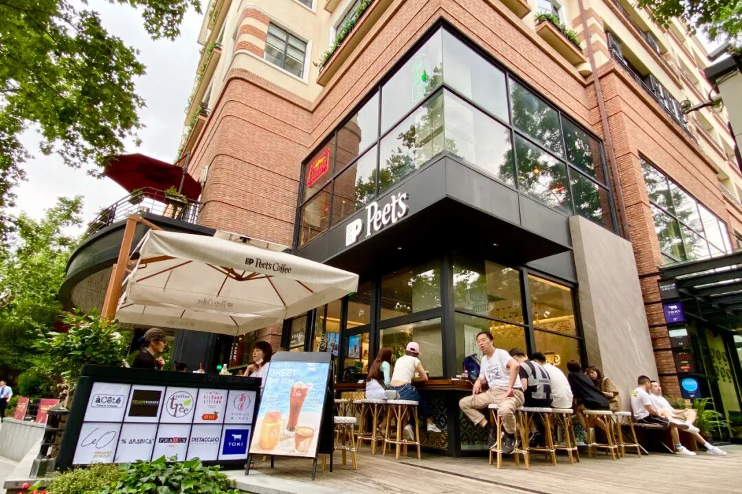 Peet’s Coffee皮爷咖啡在PISTACCHIO的旁边(这里之前是网红面包店Farine)是品牌中国大陆第二家门店。门店面积不大,呈U字形的布局,有甜品展示柜、点单区、咖啡制作区等。店内可以容纳十几位顾客,店外露台也设置了景观位。