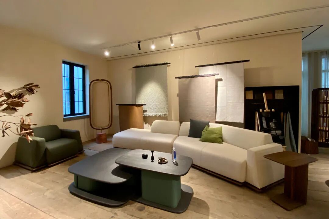 梵几客厅所在的建筑是一幢建于1941年的3层老洋房,室内保留原有的建筑结构,质朴、粗糙的土墙、水泥、木梁等,也呼应了品牌倡导面对当下的真实生活,设计克制而使用的家居哲学。