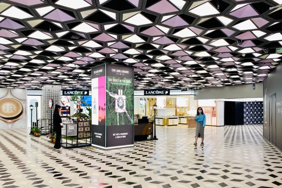 经过一番封闭调整之后,在9月项目开业十周年之际,B1层美力新境全新开业。这一层总营业面积约2400多平方米,空间氛围与楼上截然不同,公共区域的色彩和几何图案丰富。看图片或许会觉得有些纷繁,不过实地体验下来,感觉蛮精致和沉浸的。