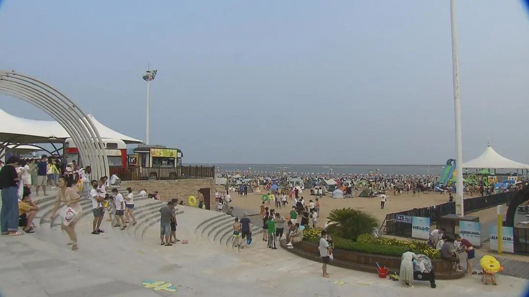 近日,记者也来到了海湾旅游区的碧海金沙景区内。虽然正处炎炎夏日,但是依旧有不少市民选择来到这里,吹着海风,踏着海浪,度过愉快的一天。随着天色渐晚,岸边的美食集市却是一天中生意最好的时候了,不少市民都选择在这里选购美食,补充能量。“今天天气不是很热,很适合带小朋友出来玩。”“这里挺不错的,餐车的美食味道很好吃。”