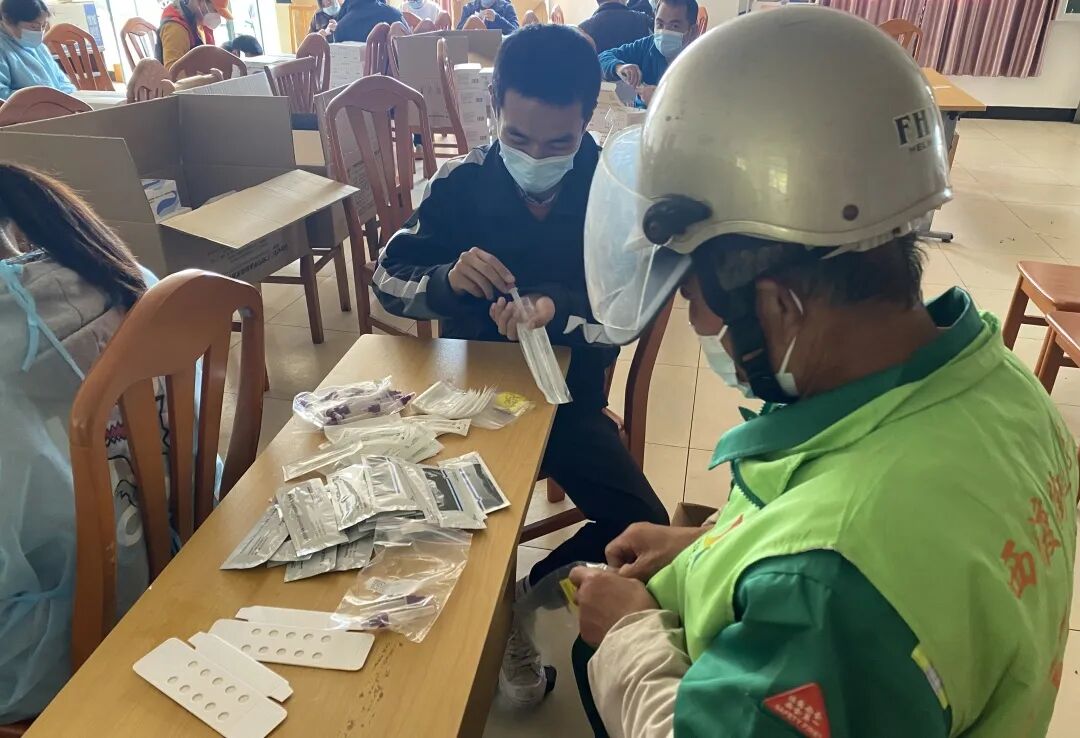 疫情防控时间紧,任务重。益民村党总支在最短的时间内运用红色网格战“疫”模式,快速地将全域划分为6个网格,由党员骨干担任网格长,来自机关单位、企业、农村的党员群众志愿者担任组员。经过严密的工作部署与系统的工作培训,大家分工明确,各司其职,合力高效地完成一次又一次的全员核酸、分发抗原检测试剂、上门采样、设卡执勤、分发通行证等大规模防疫工作。