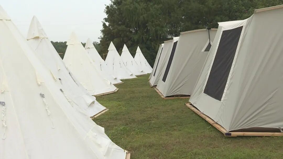 在森林公园另一侧的梅园里,也有一家新的帐篷营地“海湾1954”近日开始营业了。虽然才刚开张不久,但营地内一期20顶帐篷已经全部预订一空,商家已经在筹备打造二期营地。在这个国庆节,他们也专门针对亲子家庭设计了一系列丰富有趣的活动。营地负责人祁松介绍道,“国庆期间,我们一般在下午3点到5点之间会有一些亲子活动,比如毛毛虫比赛、飞盘等,晚上会有露天电影以及灯光秀。”
