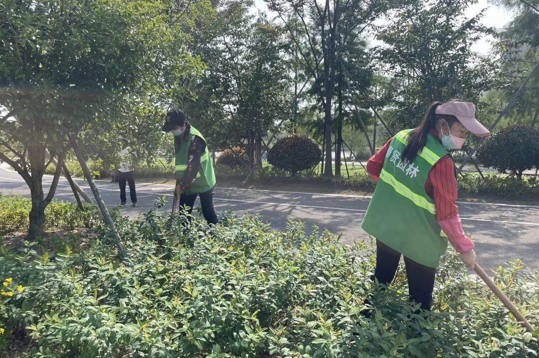 ▲为给广大市民营造干净、整洁、舒适的绿化环境,园林公司的养护工人们放弃节假日休息,国庆期间坚守岗位,加班加点守护泡泡公园等绿化景观。