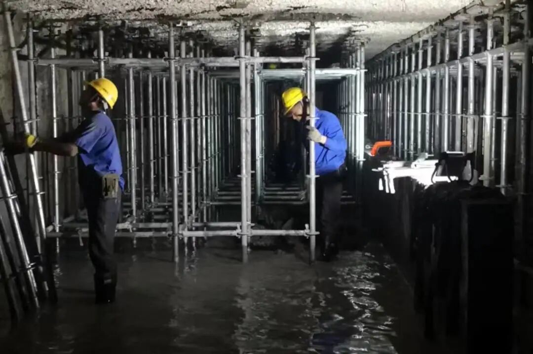 ▲“南桥源”南桥塘公共绿地项目现场工人们正在搭设盘扣支架,在基坑开挖前对老人防设施起到临时加固的作用,保障项目的顺利进行。