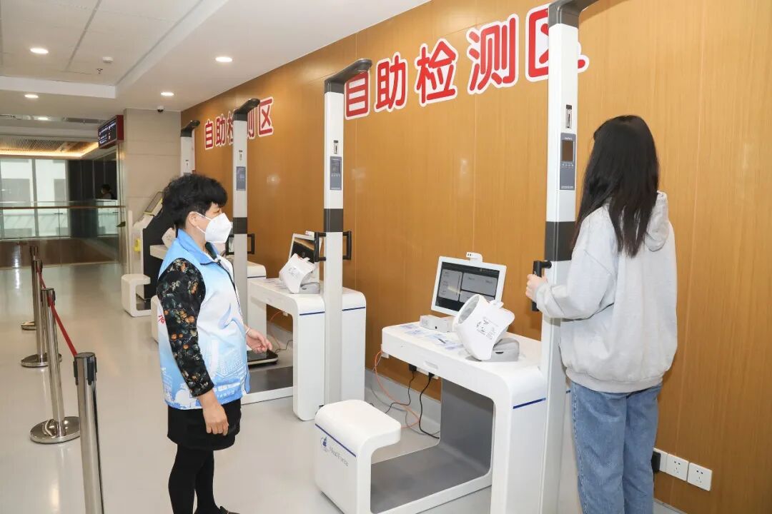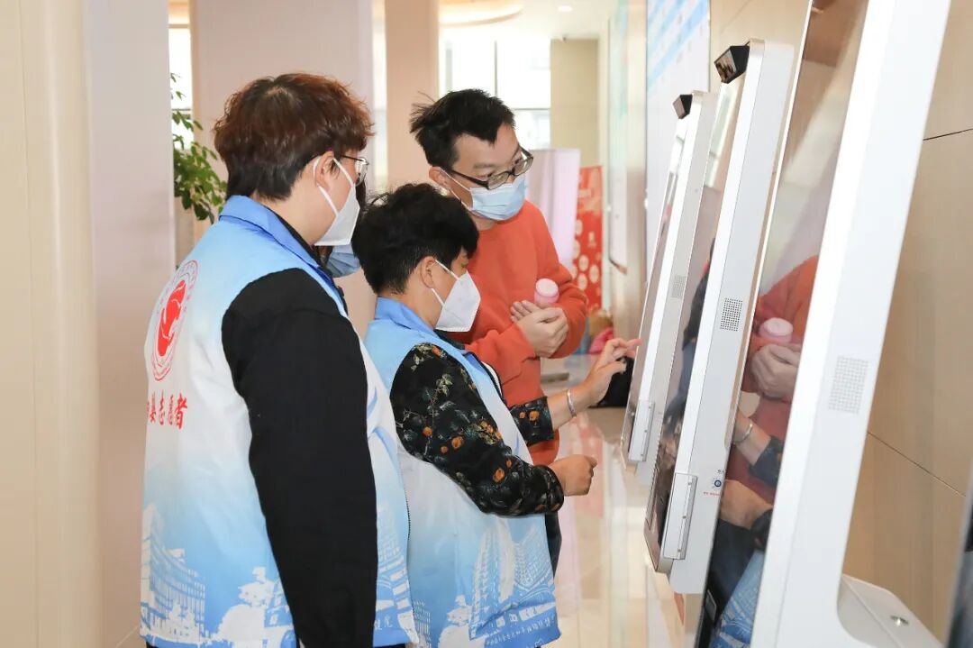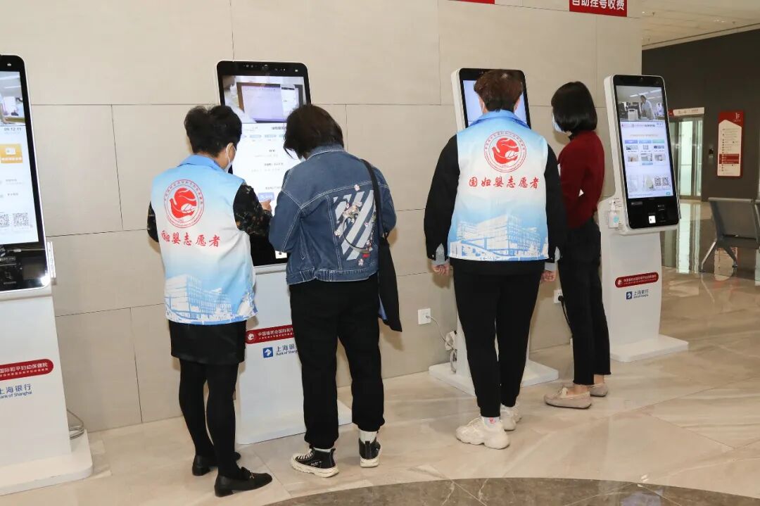 穿上印有“国妇婴志愿者”标识的蓝白小马甲,志愿者们便有序在自己的服务岗位上忙碌起来。在一楼、二楼和三楼的自助挂号收费处、产科自助检测区、妇科门诊大厅,大家都能看到他们的身影。每当市民遇到问题或困惑,志愿者们都会第一时间前来解答。