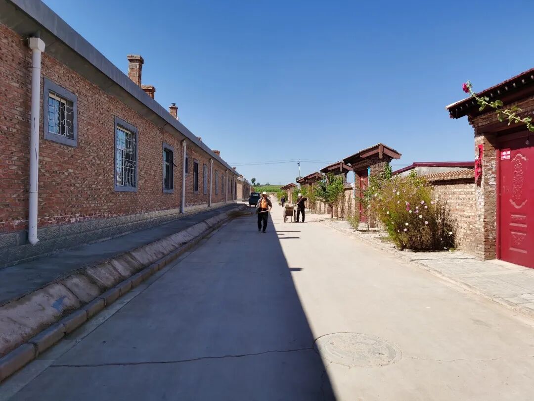 这几条信息,在我们走访的村庄和农户那里或多或少地都得到鲜活的反映。9月10日午后,我们调查的地点是新城镇大堡村。村委会办公室设在村口,有两位来自县府职能局的驻村干部留守。据他俩介绍,大堡村早前位于大约一公里以远的高坡,那里有座明代的古堡。堡前曾有水源,然岁月沧桑,水脉变换,村民吃水不便,30多年前即整村迁至眼下的平地:“时间老长了!” 政府给每家划分了5间房的宅基地,故而村里的房屋连同小院沿村道两旁整齐排列。访谈结束后,我们还去看了看大堡村原址,黄土夯实垒就的古堡依然耸立,断壁残垣已被青苔绿草覆盖。
