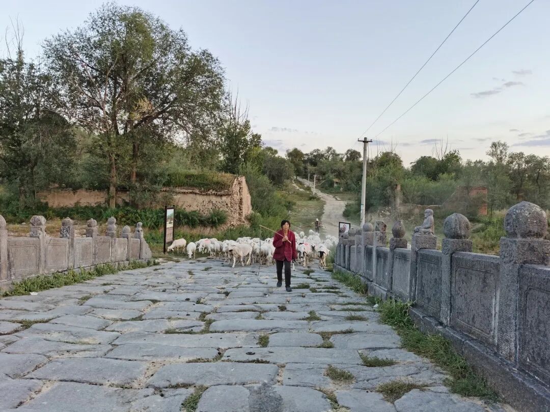 杀虎口村原址上的广义桥。太阳落山之时,村里的牧羊人把羊群赶下山。杀虎堡脚下坐着3位羊主人,迎接自己的羊只回家。