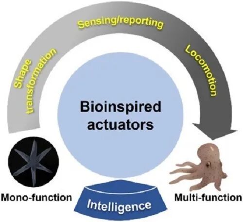 该综述总结了面向复杂变化环境应用需求的仿生智能驱动器近年来的快速发展,详细介绍了从单功能到多功能演化的仿生智能驱动器的设计构建策略及其在生物医学和机器人等领域的创新应用,并对仿生智能驱动器的现存挑战和未来发展方向进行了总结和展望(Advanced Intelligent Systems, 2020, DOI: 10.1002/aisy.202000138)。杜学敏研究团队成员崔欢庆助理研究员与赵启龙副研究员为共同第一作者,杜学敏研究员为通讯作者。