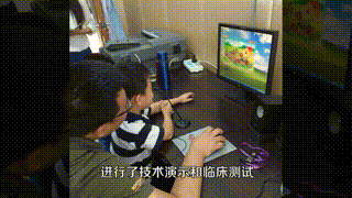 △ 孩子和老师正在使用该系统进行言语恢复训练