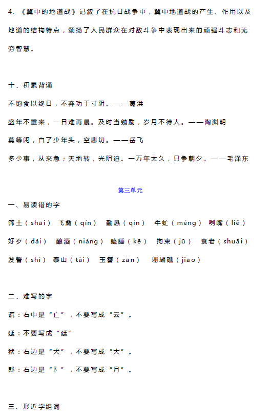 【2019语文(上册)单元知识汇总区】