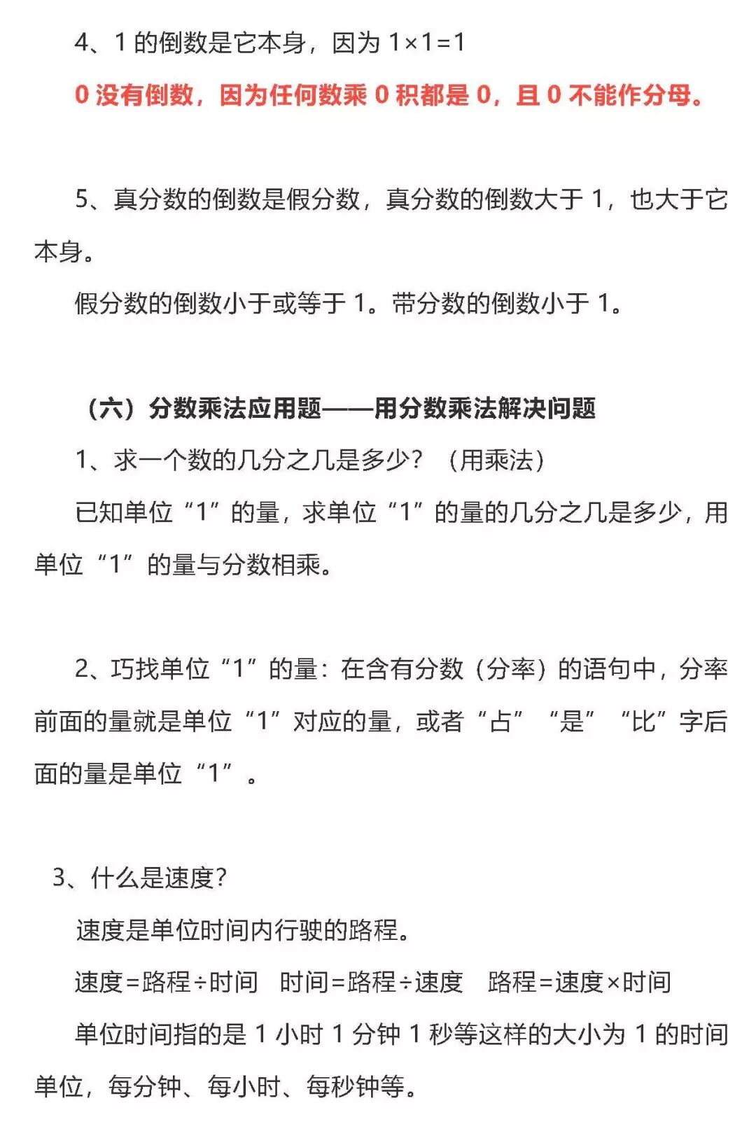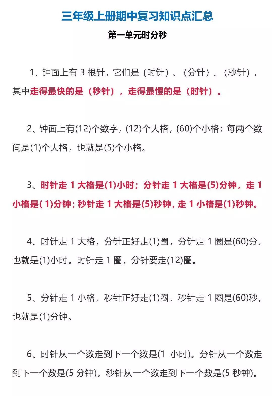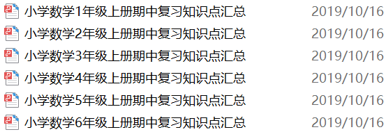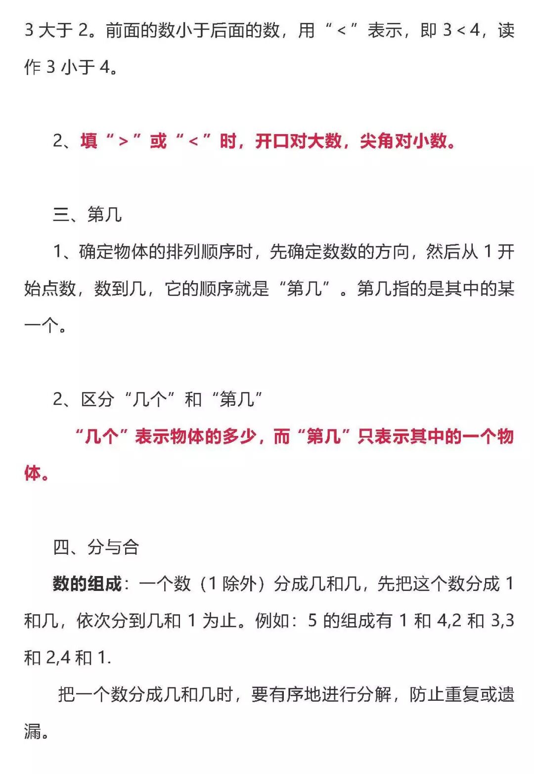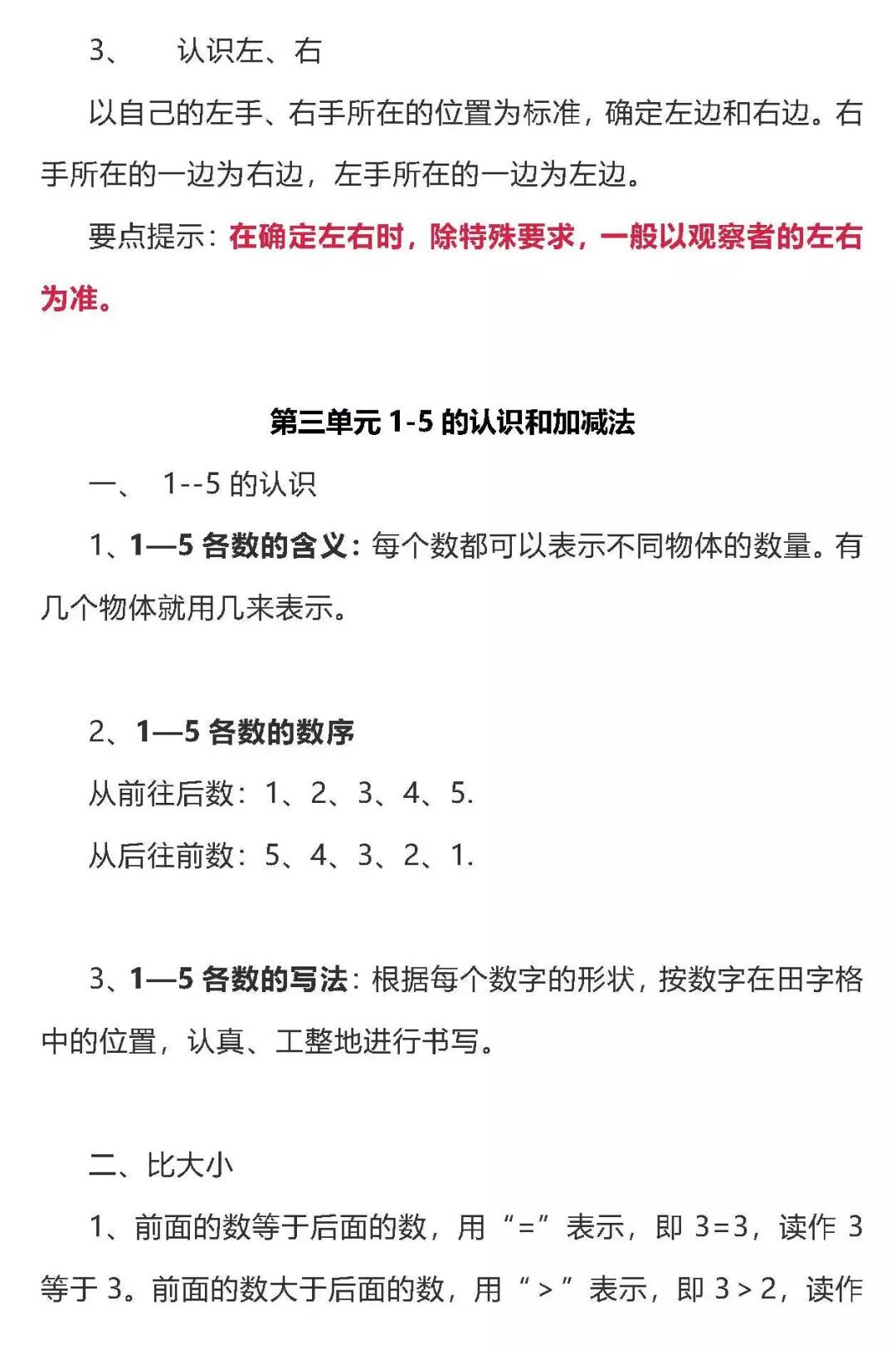 2019人教版1-6年级数学(上册)期中知识要点汇总