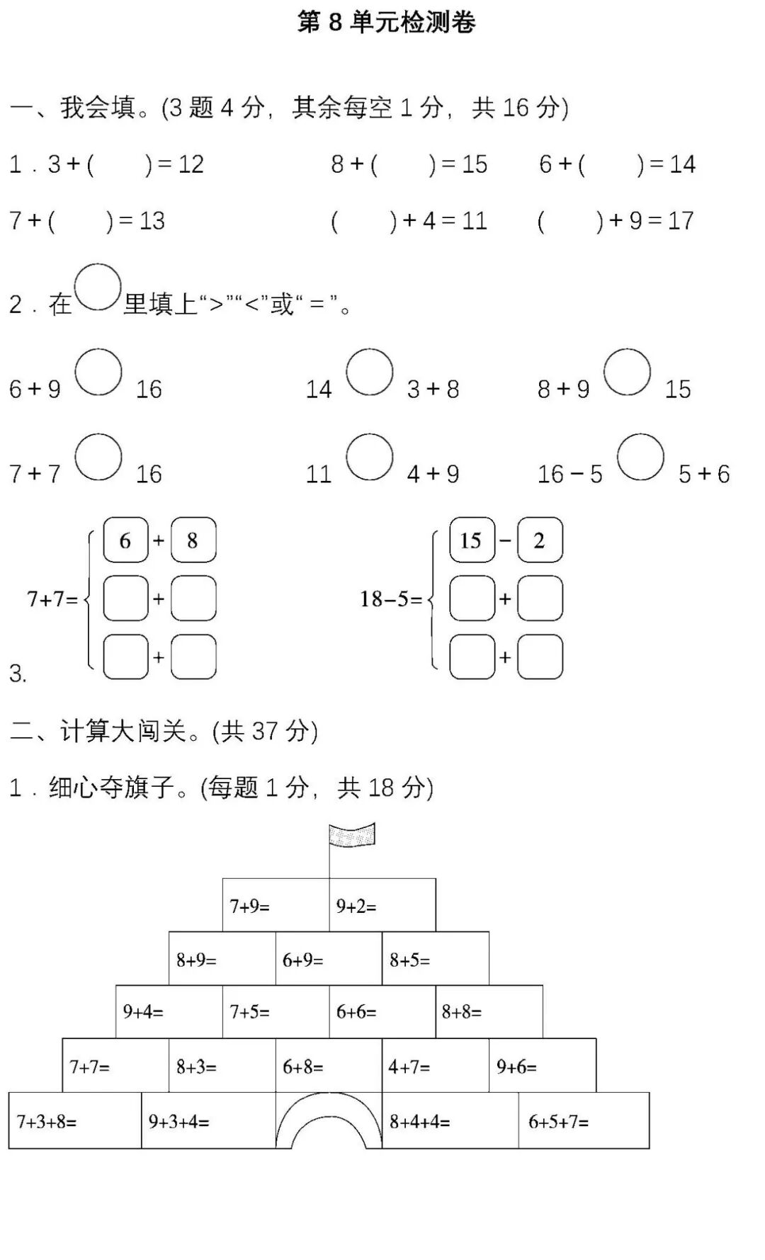 部编1-6年级语文(上册)第八单元一套试卷预览