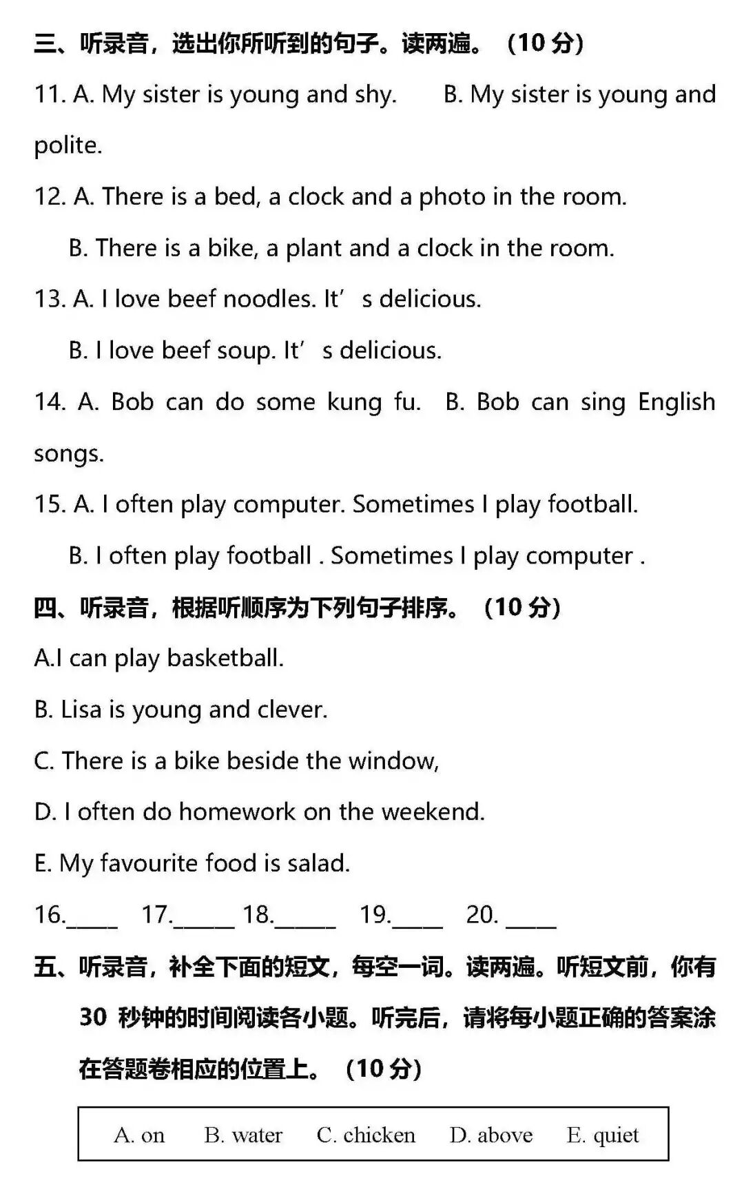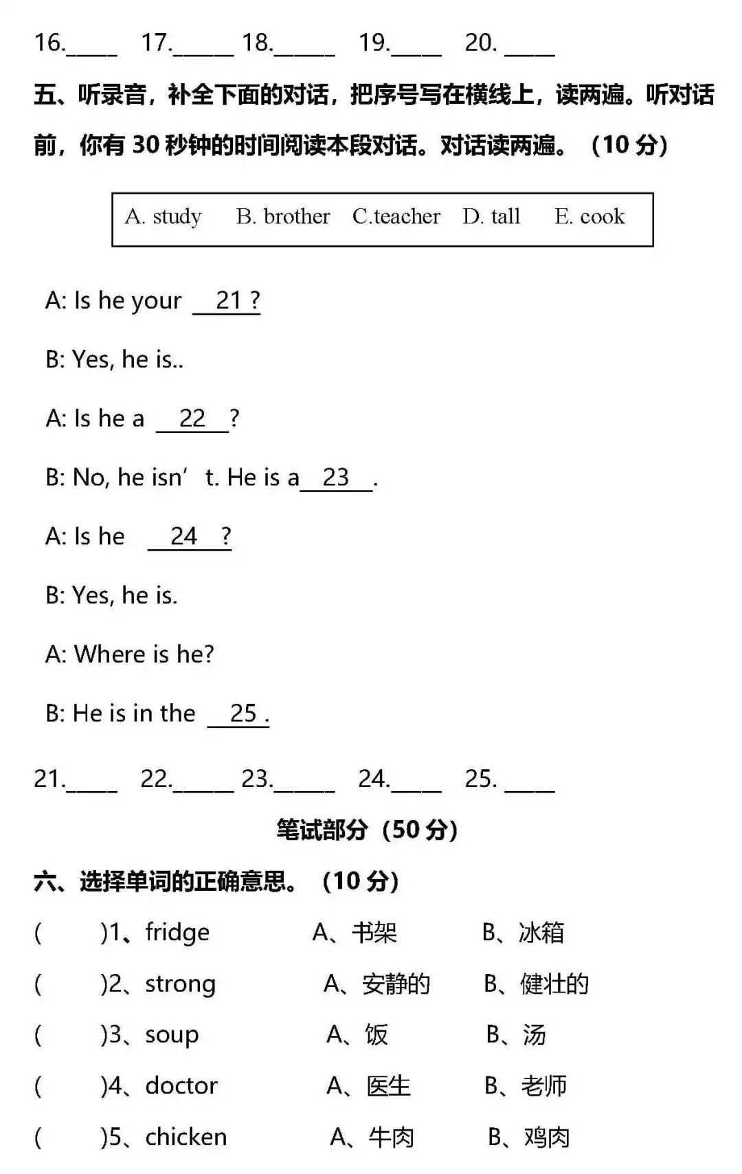 人教PEP版3-6年级英语(上册)期末密卷② | 可下载