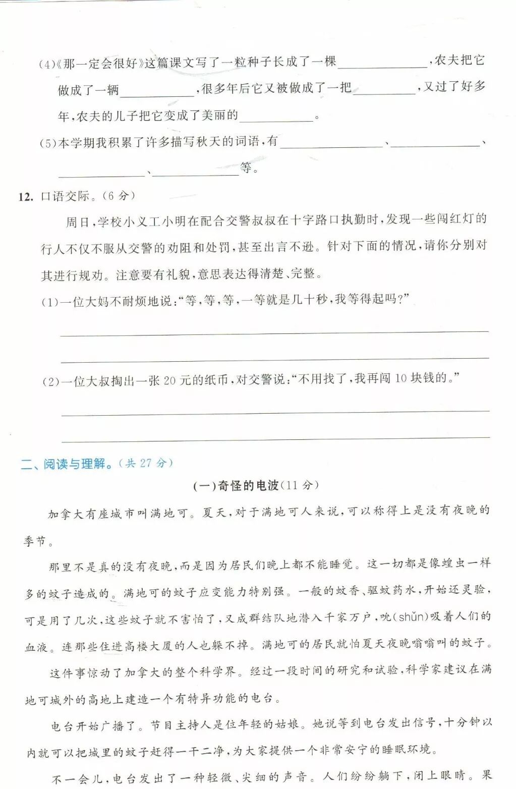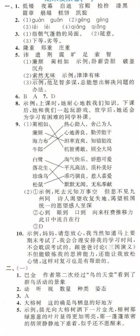 部编1-6年级语文(上册)精选课外阅读+答案,暑假练练!